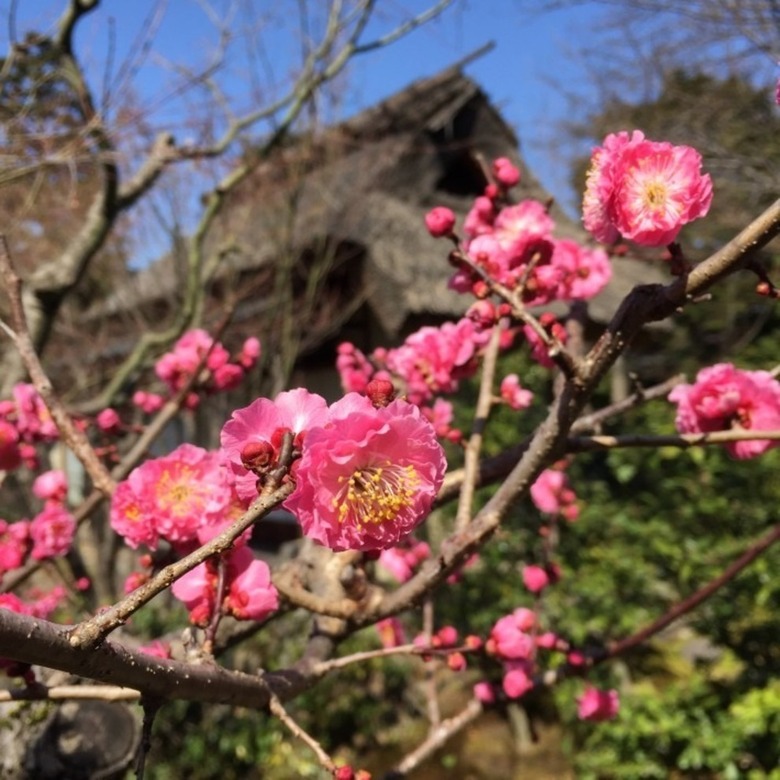 前回ご紹介させていただいた鹿児島紅梅がいま見頃を迎え、紅い花を枝いっぱいに咲かせております。