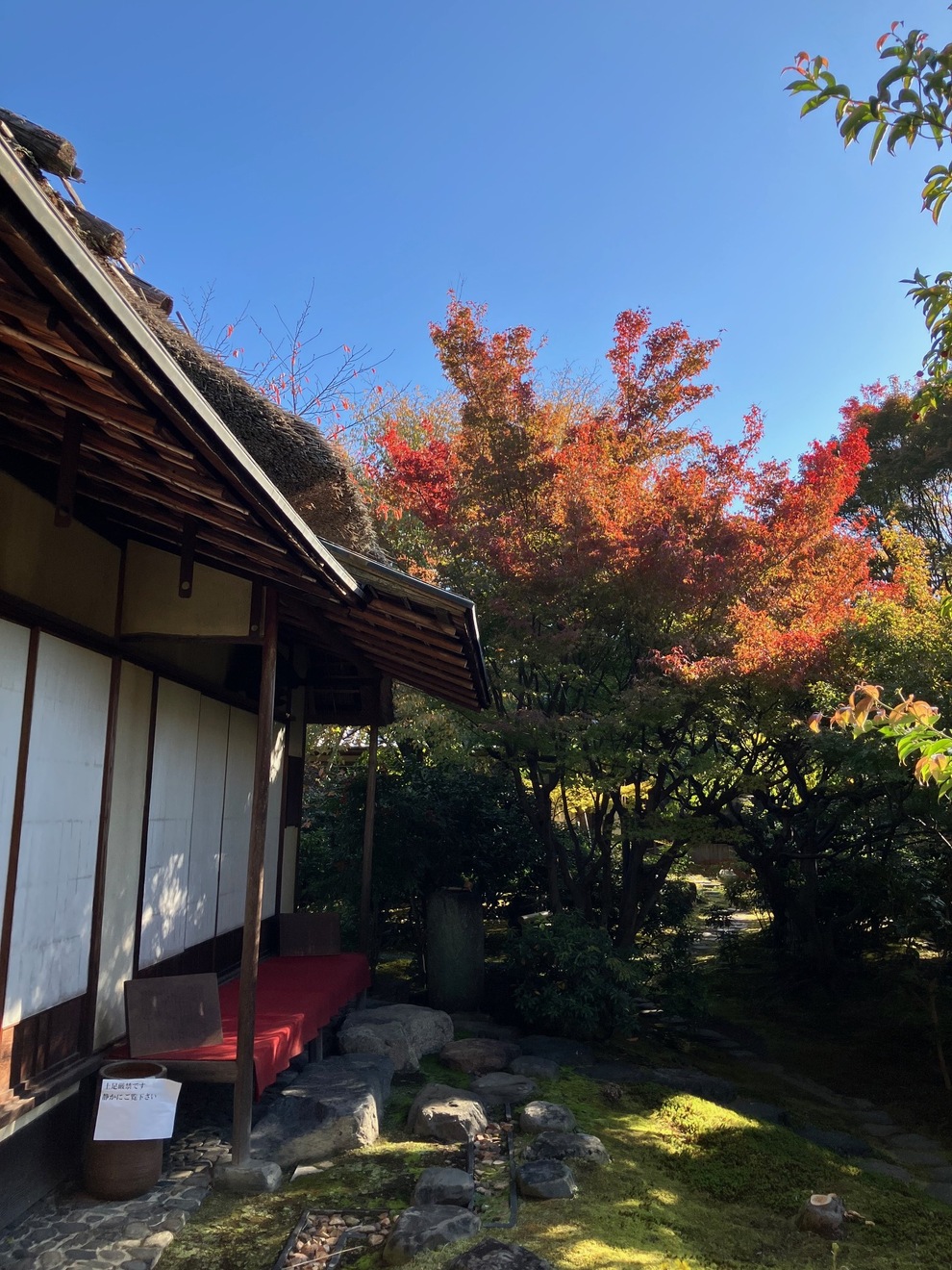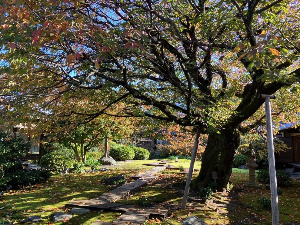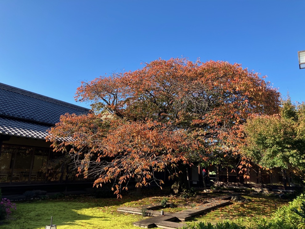 2025/11/19 御殿荘だより 紅葉し始めました。 朝夕冷え込むにつれ、中庭の木々が色づき始めました。 光格天皇ゆかりの茶室あたりのモミジや、大山桜の紅葉が 秋晴れの青に映えます。 お知らせ・御殿荘だより一覧へ戻る